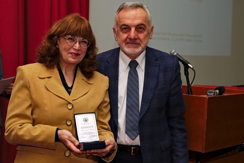 Добитница плакете проф. др Зона Мркаљ са председником Друштва