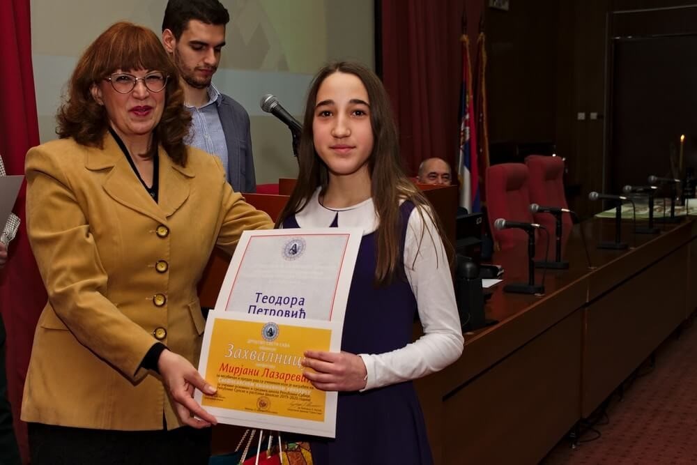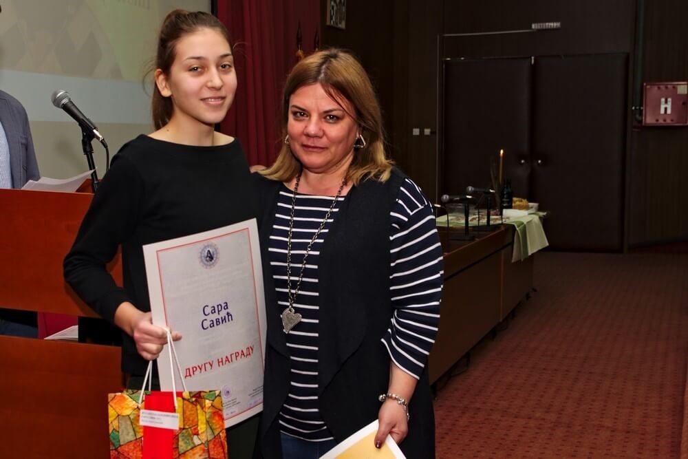 Награђена Сара Савић са проф. Бојаном Симоновић