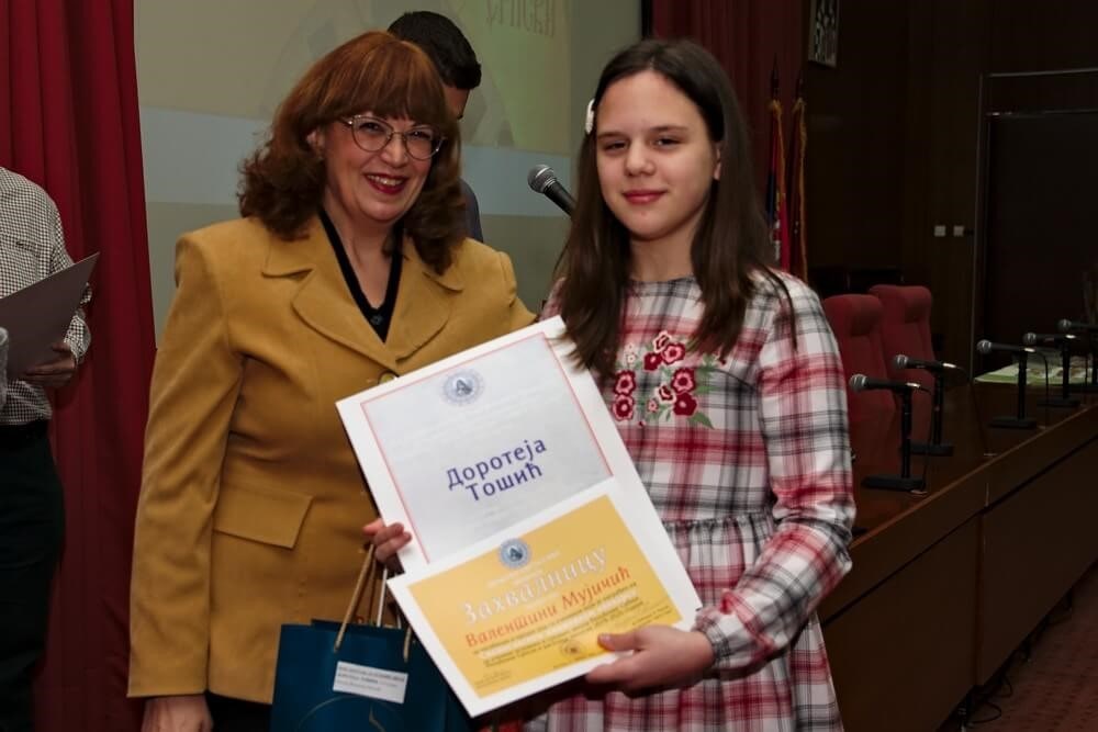 Првонаграђена Доротеја Тошић и проф. др Зона Мркаљ