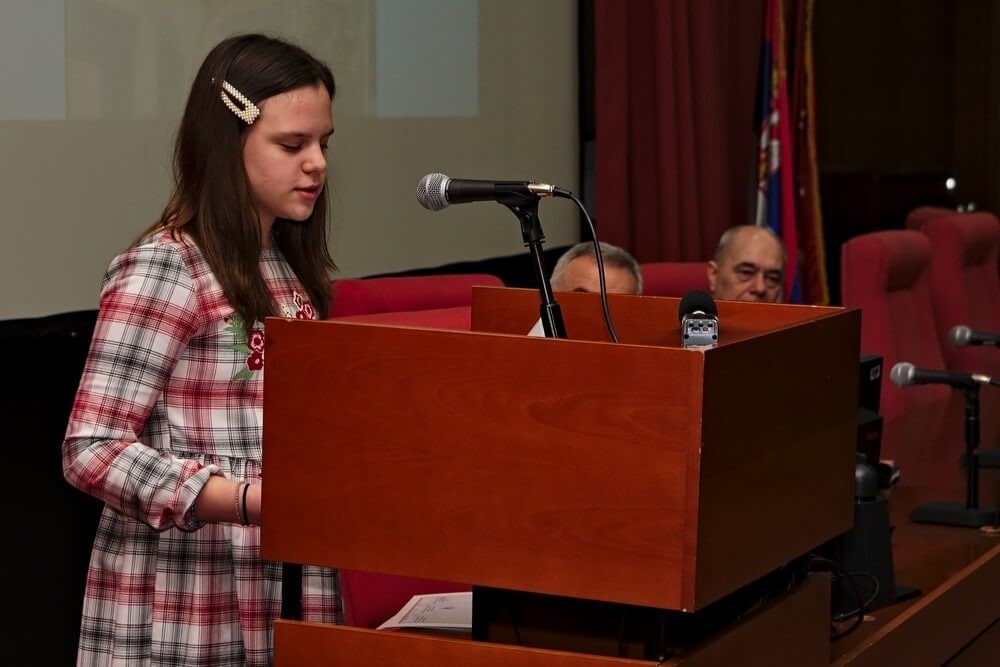 Беседник проф. др Томислав Јовановић, проф. др Сузана Јовановић, председник Друштва и награђена Вања Милошевић